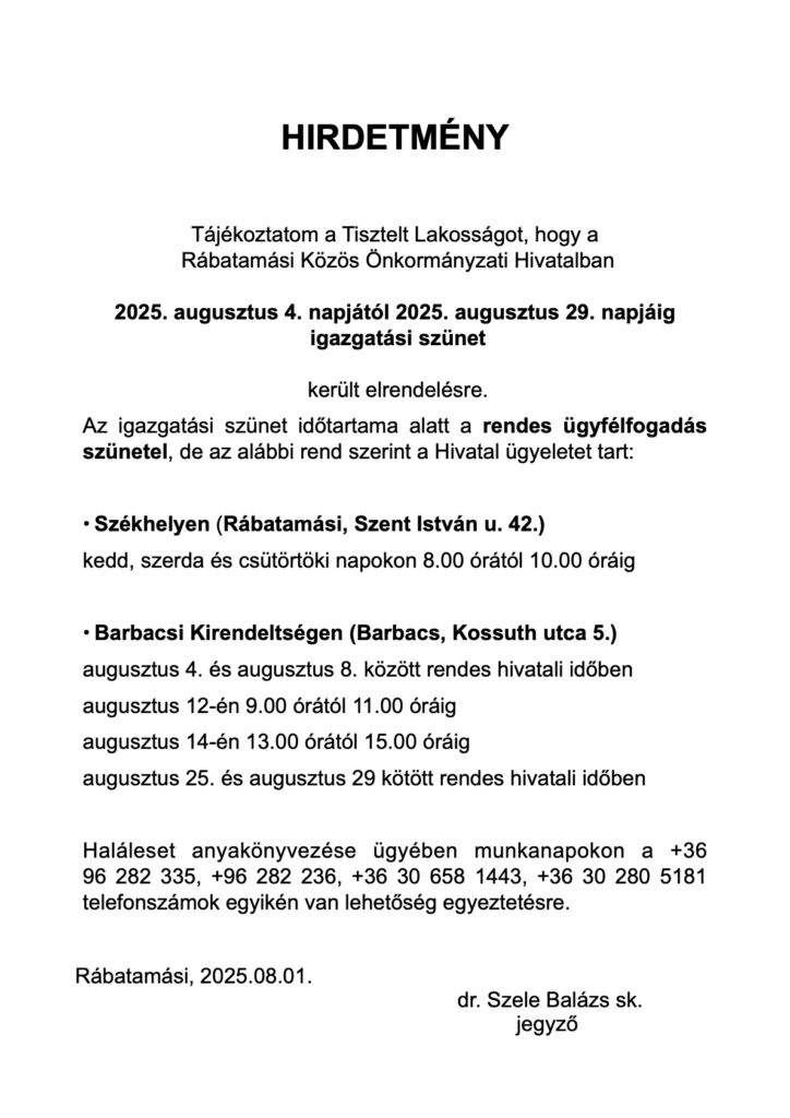 Posted on augusztus 1, 2025Posted in Aktualitás Igazgatási szünet Bejegyzés navigáció Partnerségi hirdetmény és lakossági fórum meghívóHáziorvos szabadság